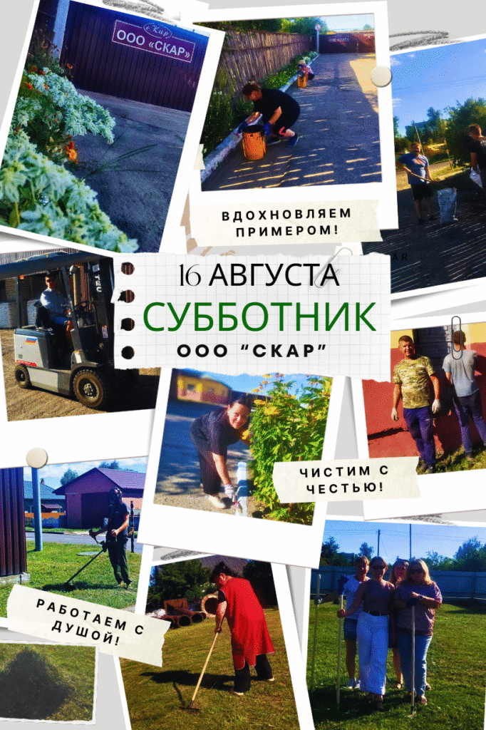 16 августа 2025 года работники компании ООО «Скар» объединили свои усилия для проведения областного субботника, посвященный благоустройству на объекте » Реконструкция комплекса воинской славы в честь операции «Багратион» времен Великой Отечественной войны в Светлогорском районе Гомельской области.» Этот день стал не только возможностью для сотрудников компании поработать на благо своей родины, но и продемонстрировать единство и патриотизм, которые всегда были важны для нашего народа.